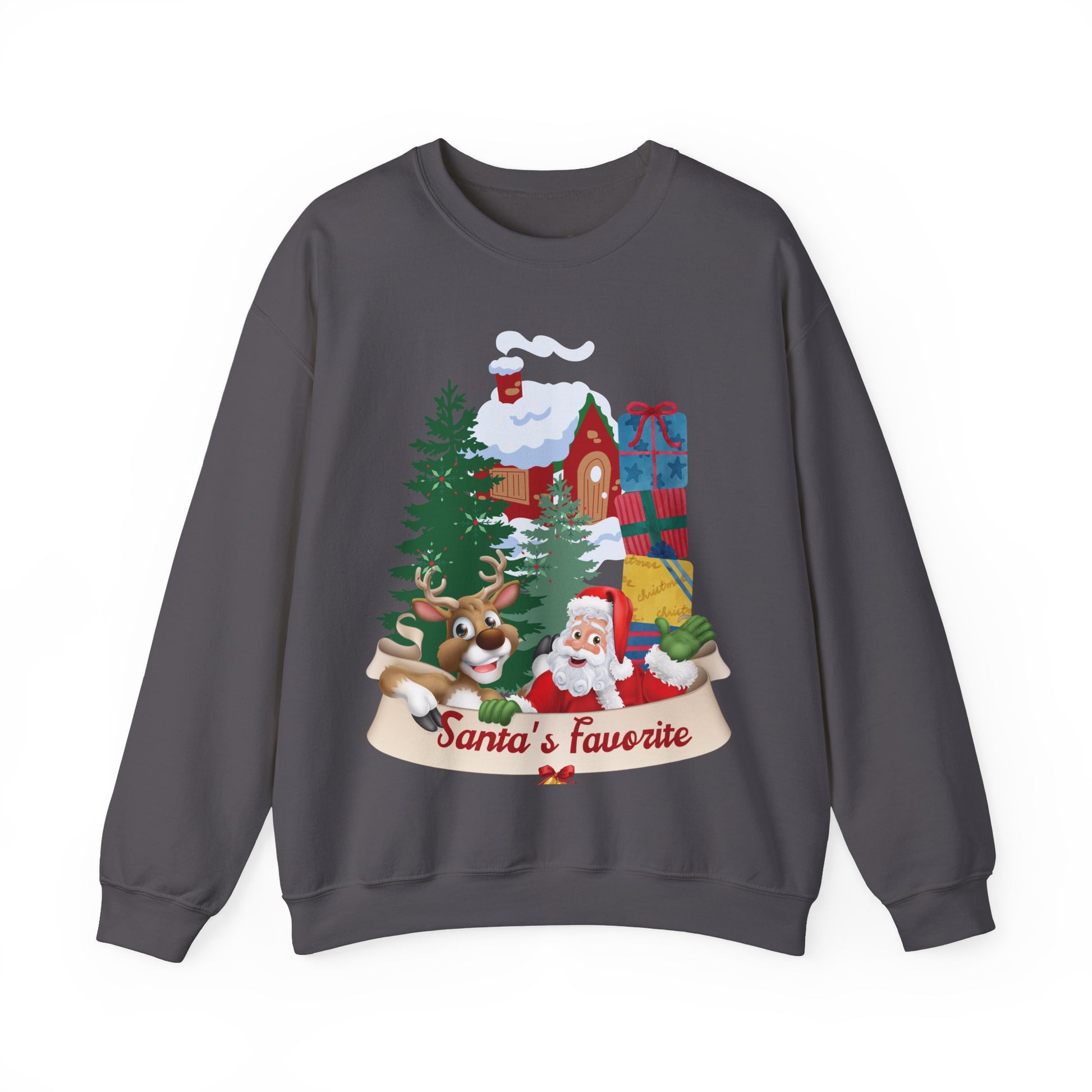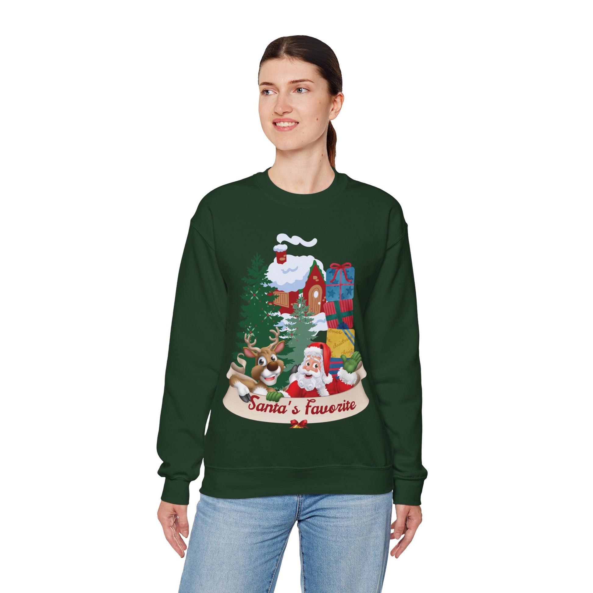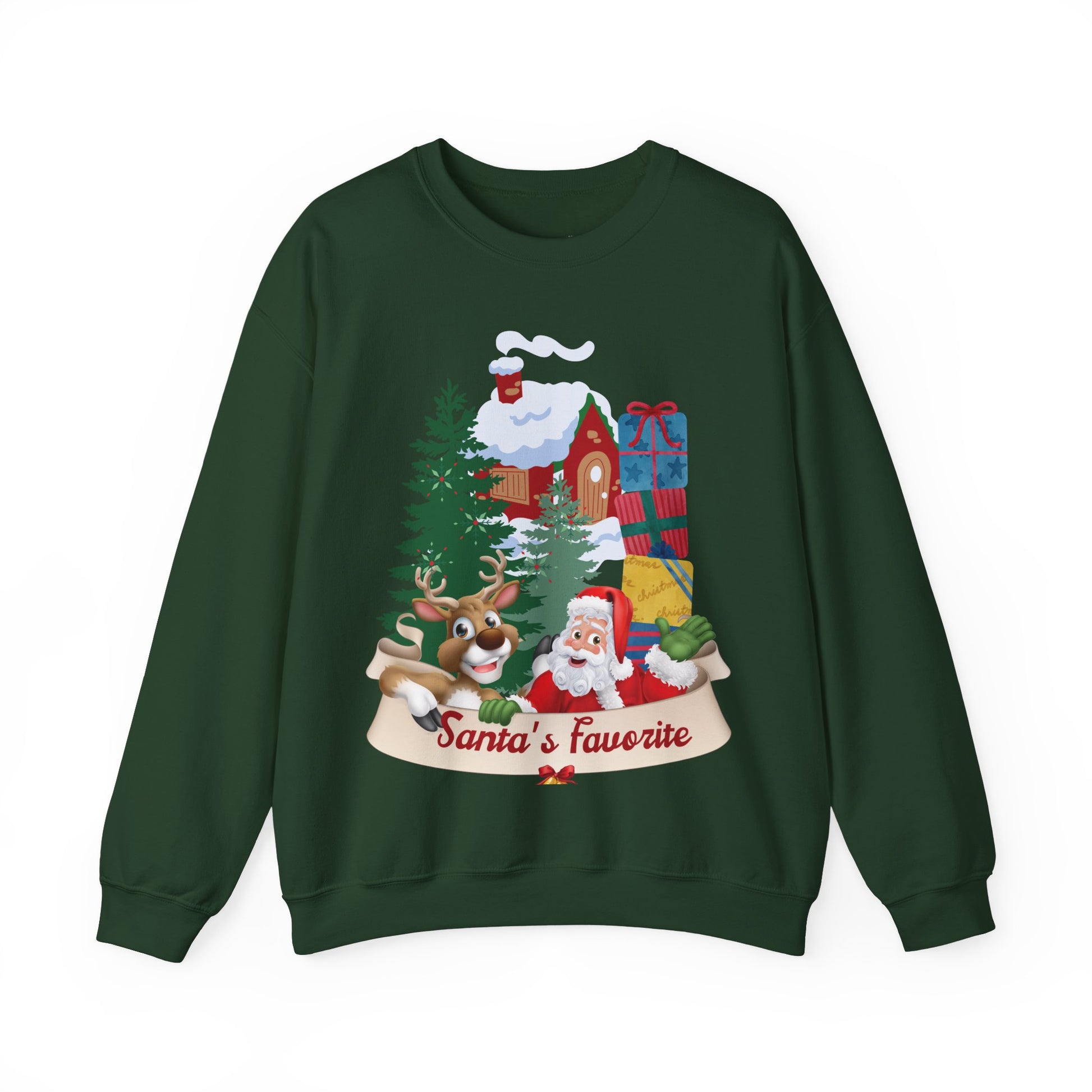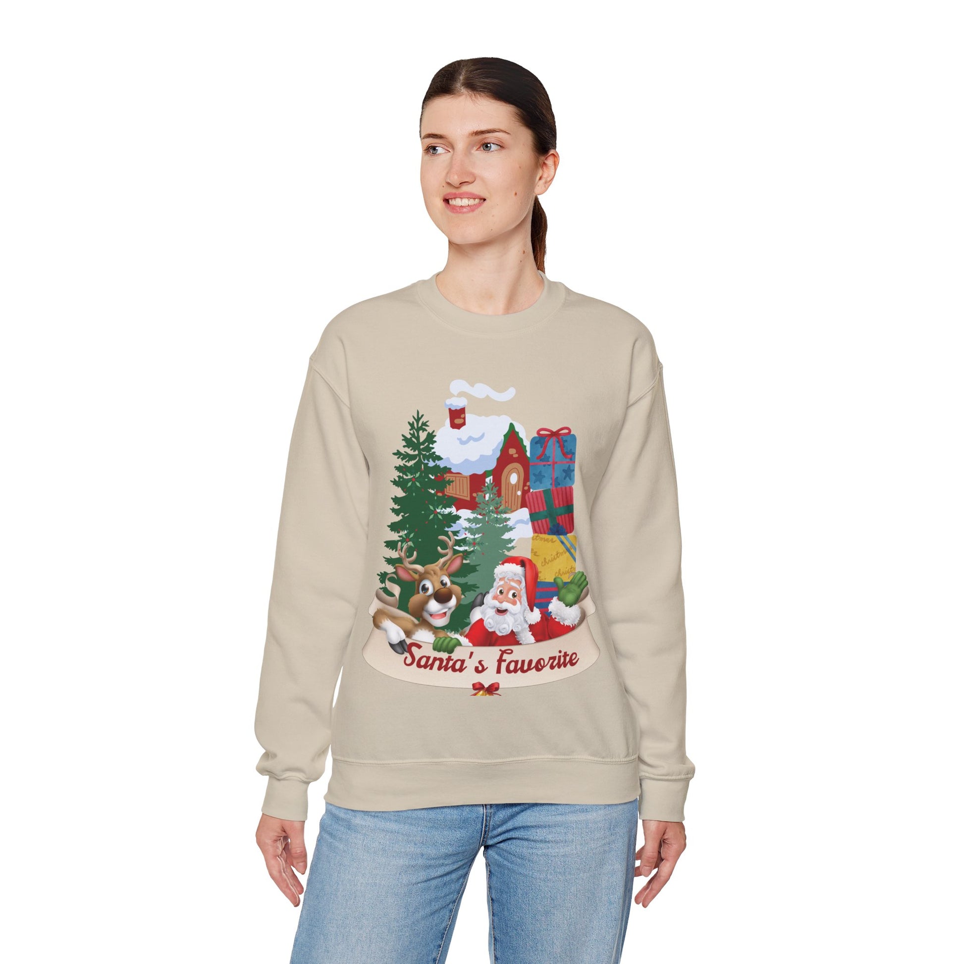 Show off your festive spirit with our Santa's Favorite Sweatshirt! Made from soft, cozy fabric, it's perfect for chilly winter days and spreading Christmas cheer. This playful design is great for holiday parties, family gatherings, or as a fun seasonal gift. Be Santa's favorite this holiday season!